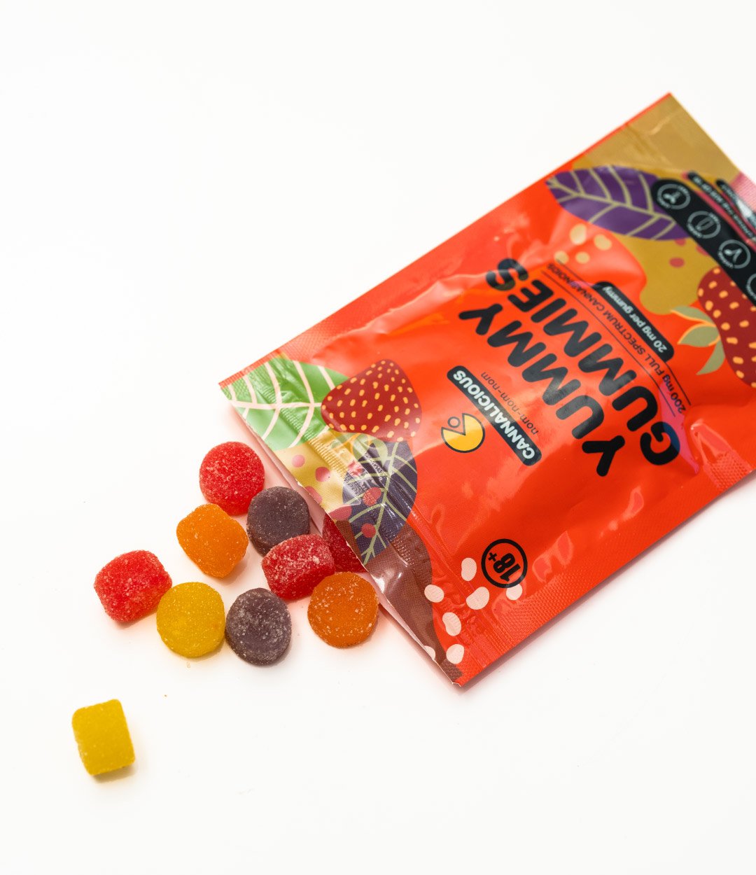 Indulge in our delectable Cannalicious Yummy Gummies, infused with 20mg THC per gummy, for a sweet, relaxing experience. These fruity cannabis gummies are infused with full-spectrum cannabinoids, offering a delightful way to enjoy the benefits of cannabis.